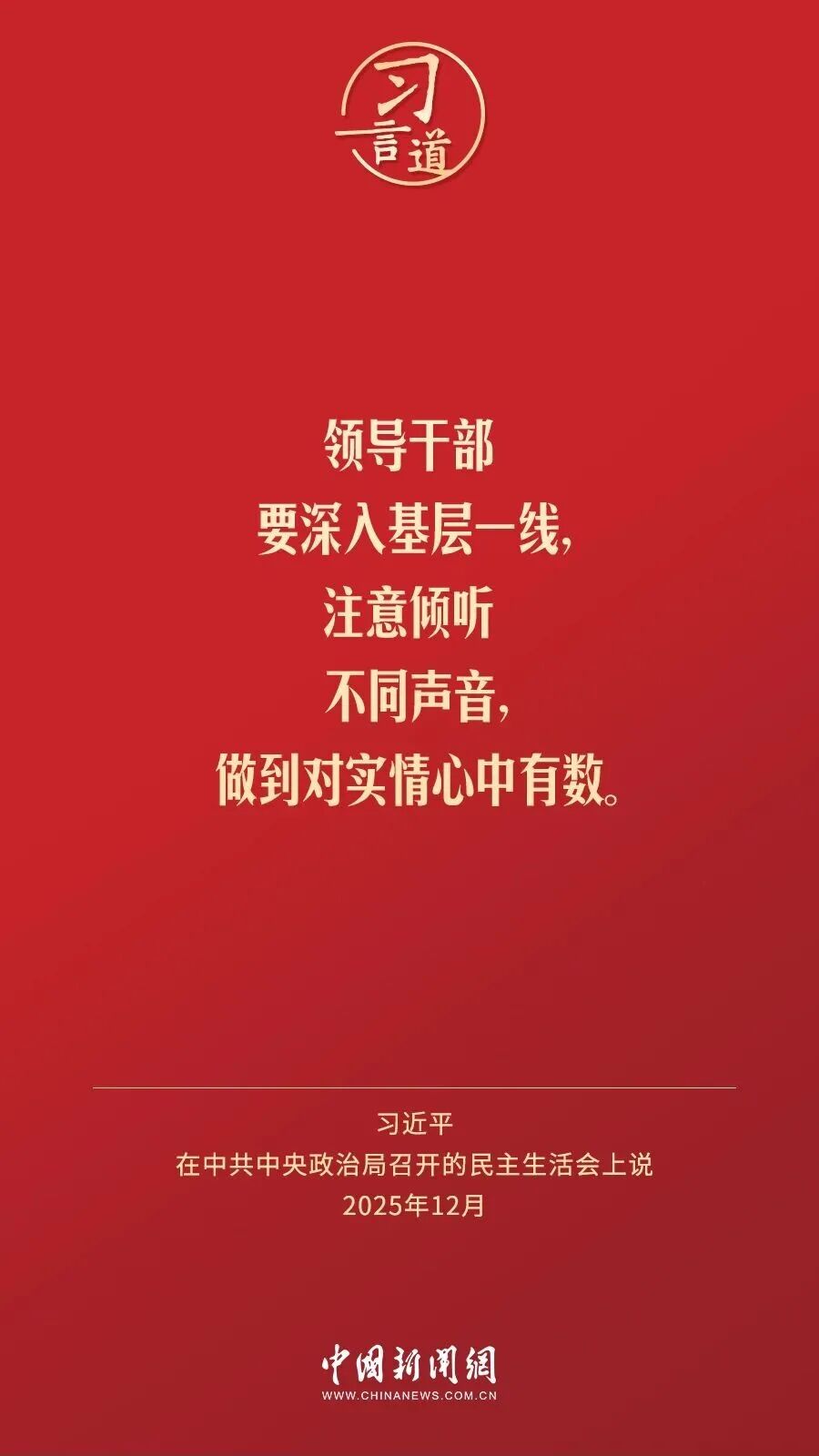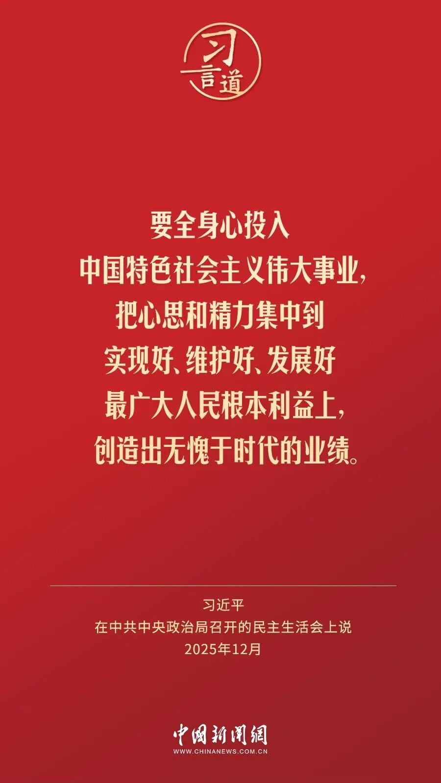 12月25日至26日,中共中央政治局召開民主生活會,中共中央總書記習(xí)近平主持會議并發(fā)表重要講話。習(xí)近平強(qiáng)調(diào)——