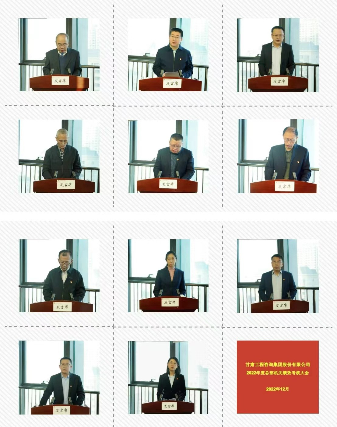 12月27日,甘肅工程咨詢集團召開2022年度總部機關績效考核大會,按照新修訂的《機關績效考核管理辦法(試行)》,對各職能部門績效、職能部門正副職崗位績效進行考核,同時對職能部門正副職進行年度政治素質考察專項測評。黨委書記、董事長馬明主持并講話。