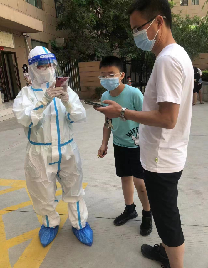 疫情防控,黨員先行。面對(duì)嚴(yán)峻復(fù)雜的疫情防控形勢(shì),在醫(yī)護(hù)人員短缺的情況下,有著14年黨齡的張鵬下沉到學(xué)府路社區(qū),擔(dān)任起眾邦金水灣2號(hào)院疫情防控核酸檢測(cè)掃碼員工作。除了負(fù)責(zé)掃碼錄入信息以外,張鵬還負(fù)責(zé)為小區(qū)居民配送生活物資、維護(hù)小區(qū)內(nèi)的秩序、開展夜間通宵值守工作等,熱心的服務(wù)和認(rèn)真的工作態(tài)度,贏得了小區(qū)、物業(yè)和街道辦人員的一致贊揚(yáng)和肯定。