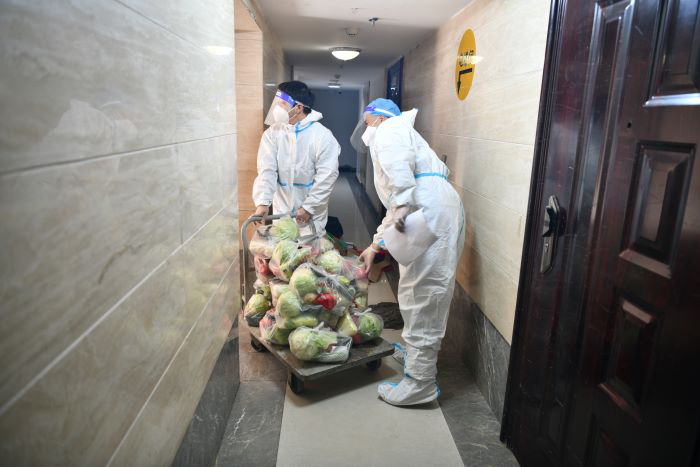 近日,根據(jù)疫情防控要求,建筑設(shè)計(jì)院協(xié)同轄區(qū)街道防疫部門對(duì)職工家屬區(qū)個(gè)別單元進(jìn)行封控管理,樓內(nèi)全體人員就地隔離觀察。為了保障職工群眾居家隔離期間的正常生活,建筑設(shè)計(jì)院及時(shí)采購新鮮蔬菜,送菜上門,將企業(yè)的關(guān)懷與溫暖送到職工的手中。