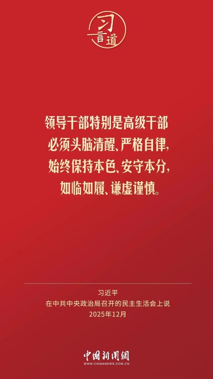 12月25日至26日,中共中央政治局召開民主生活會,中共中央總書記習(xí)近平主持會議并發(fā)表重要講話。習(xí)近平強(qiáng)調(diào)——