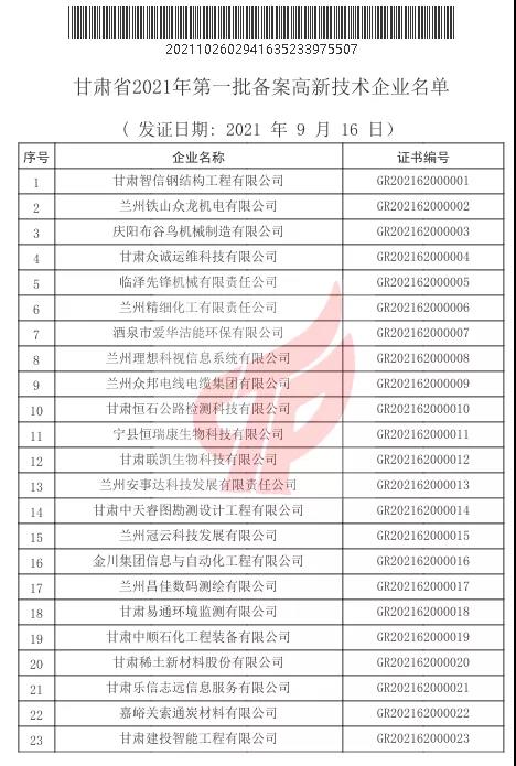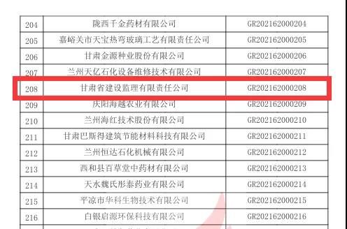 甘肅省水利水電勘測(cè)設(shè)計(jì)研究院有限責(zé)任公司中標(biāo)甘肅省引洮供水二期配套城鄉(xiāng)供水信息化專(zhuān)項(xiàng)工程方案、招標(biāo)設(shè)計(jì)及施工圖設(shè)計(jì)項(xiàng)目;平?jīng)鍪谐缧趴h棗林溝水庫(kù)工程;萬(wàn)州區(qū)魚(yú)背山水庫(kù)大壩安全評(píng)估報(bào)告編制;協(xié)合拉引水樞紐、秋格爾引水樞紐、英爾引水樞紐安全評(píng)價(jià)項(xiàng)目。中標(biāo)蘭州中川機(jī)場(chǎng)三期擴(kuò)建供油工程項(xiàng)目機(jī)坪航站區(qū)工程勘察。甘肅省建設(shè)監(jiān)理有限責(zé)任公司中標(biāo)省政府為民實(shí)事保障性租賃住房項(xiàng)目監(jiān)理。甘肅省建設(shè)監(jiān)理有限責(zé)任公司根據(jù)《高新技術(shù)企業(yè)認(rèn)定管理辦法》和《高新技術(shù)企業(yè)認(rèn)定管理工作指引》有關(guān)規(guī)定,全國(guó)高新技術(shù)企業(yè)認(rèn)定管理工作領(lǐng)導(dǎo)小組辦公室于10月26日正式公布了甘肅省2021年第一批備案的294家高新技術(shù)企業(yè)名單,建設(shè)監(jiān)理公司榜上有名,被評(píng)定為“高新技術(shù)企業(yè)”。