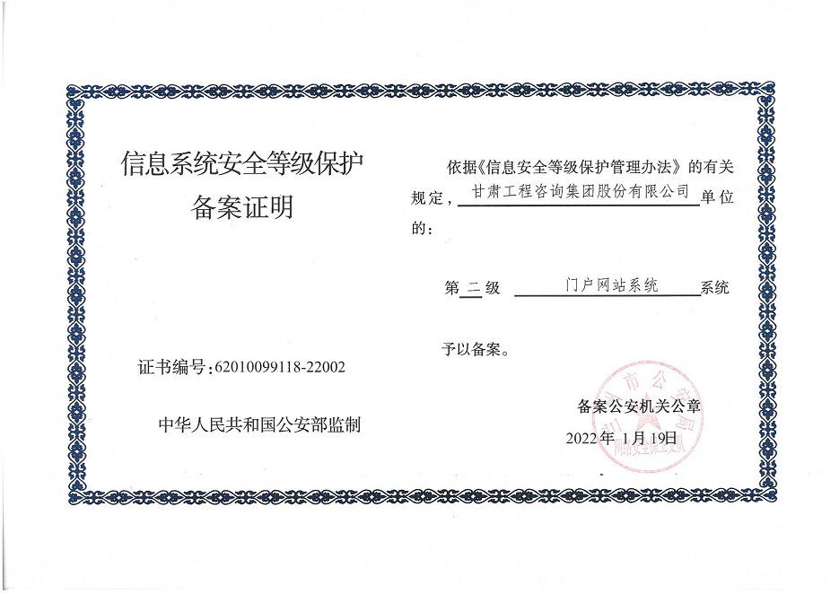 自工作開展以來,相關(guān)子公司積極貫徹落實集團(tuán)公司工作舉措,集團(tuán)本部、建筑設(shè)計院、水電設(shè)計院、土木工程院、招標(biāo)咨詢集團(tuán)、交通監(jiān)理公司合計16個信息系統(tǒng)已順利完成信息系統(tǒng)安全等級保護(hù)2.0測評備案工作,并獲得監(jiān)管部門頒發(fā)的《信息系統(tǒng)安全等級保護(hù)備案證明》。通過此次等級保護(hù)2.0測評工作,集團(tuán)公司網(wǎng)絡(luò)和重要的信息數(shù)據(jù)系統(tǒng)的安全防護(hù)和保障能力得到進(jìn)一步提升,為推動集團(tuán)公司數(shù)字化轉(zhuǎn)型工作打下堅實的基礎(chǔ)。