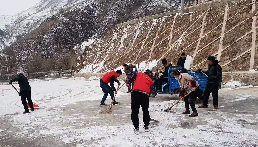 2月7日,農(nóng)歷大年初七,伴隨著凜冽的寒風(fēng),卓尼縣柳林鎮(zhèn)東石溝村氣溫驟降,雪花紛紛揚(yáng)揚(yáng)地飄落,厚厚地積雪給人民群眾的生活帶來諸多不便。甘肅工程咨詢集團(tuán)駐村幫扶工作隊(duì)在鎮(zhèn)黨委的統(tǒng)一部署下,不畏嚴(yán)寒,迅速投入到環(huán)境衛(wèi)生整治、融化結(jié)冰路面和清掃積雪活動中。