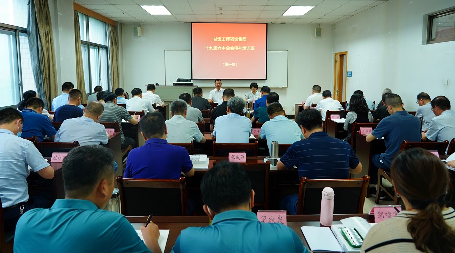 為認真學習貫徹黨的十九屆六中全會精神,深入學習領會習近平總書記在省部級主要領導干部學習貫徹黨的十九屆六中全會精神專題研討班上的重要講話精神,6月22日,甘肅工程咨詢集團舉辦黨的十九屆六中全會精神開班儀式。集團公司黨委書記、董事長宋忠慶出席開班儀式并講話,黨委副書記王春燕主持。