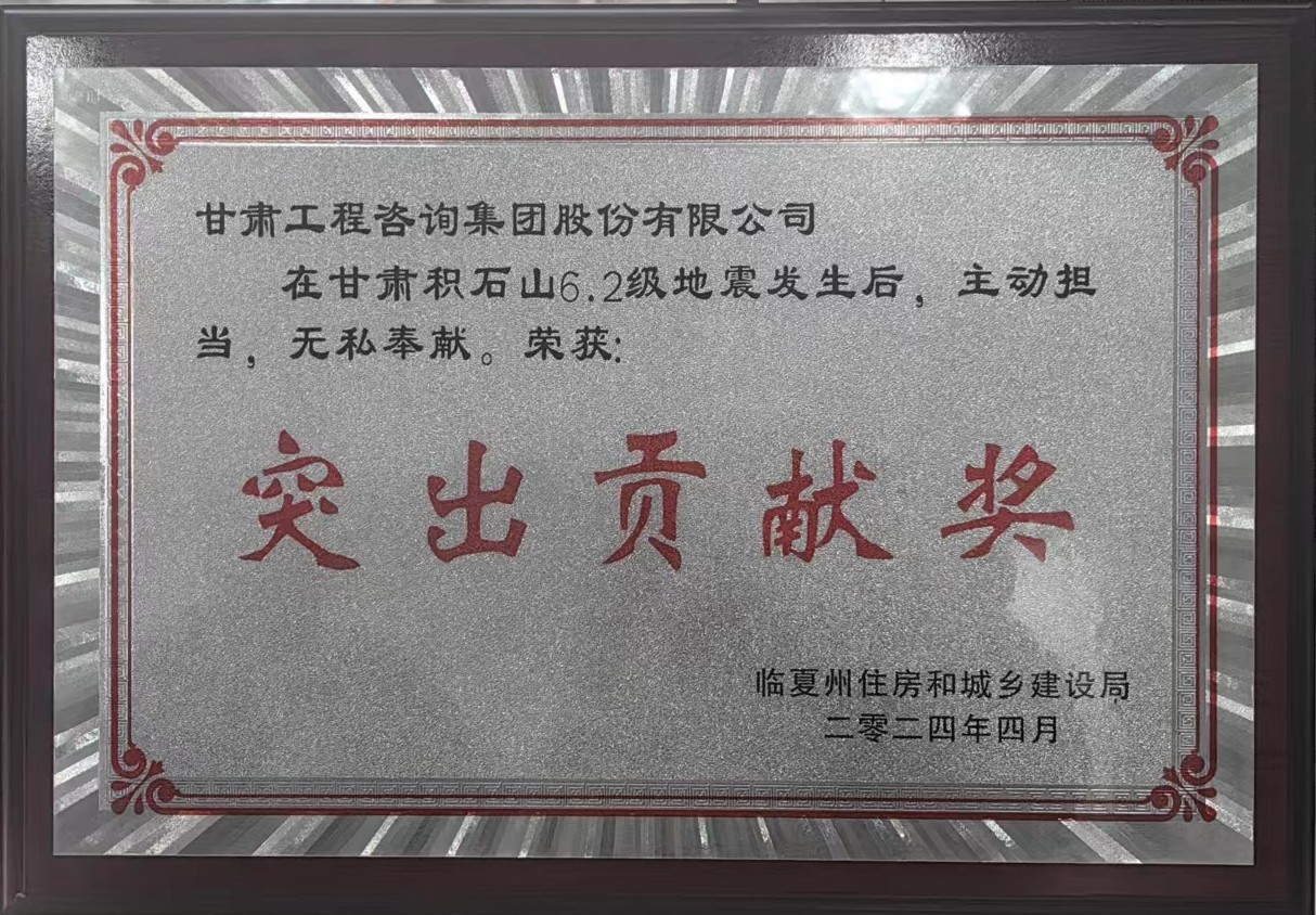 在甘肅積石山6.2級地震后,甘肅工程咨詢集團(tuán)主動擔(dān)當(dāng),無私奉獻(xiàn),在應(yīng)急救援、災(zāi)后重建工作中表現(xiàn)突出,被臨夏州住房和城鄉(xiāng)建設(shè)局授予“突出貢獻(xiàn)獎”。