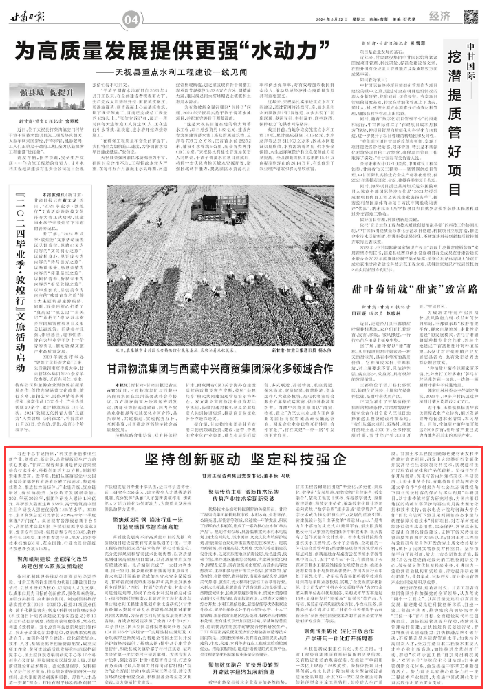 科技創(chuàng)新成果重在轉(zhuǎn)化、貴在應(yīng)用。甘肅工程咨詢集團(tuán)既有科研院所的歷史傳承,又有貼近市場(chǎng)的現(xiàn)實(shí)優(yōu)勢(shì),在推進(jìn)產(chǎn)學(xué)研用一體化上取得了積極成效。堅(jiān)持依托項(xiàng)目開展創(chuàng)新,省水電設(shè)計(jì)院為解決大型鉆探設(shè)備進(jìn)場(chǎng)受限難題,研發(fā)YG—35C型全液壓可拆卸輕便型多用途工程鉆機(jī),即將進(jìn)入生產(chǎn)階段。甘肅土木工程院圍繞綠色建材研發(fā)和傳統(tǒng)建材高效利用,研發(fā)出大宗煤矸石資源化開發(fā)高活性生態(tài)膠凝材料技術(shù),實(shí)現(xiàn)建材生產(chǎn)過程節(jié)能減排和產(chǎn)品低能耗。堅(jiān)持開放合作開展創(chuàng)新,深化與省內(nèi)外知名高校、科研院所、大型企業(yè)的合作,省建筑設(shè)計(jì)院與西安交通大學(xué)合作“鄉(xiāng)村振興與社會(huì)生態(tài)韌性視角下西北傳統(tǒng)村落的保護(hù)與再生利用”科研項(xiàng)目,以甘肅傳統(tǒng)村落為研究對(duì)象,為國內(nèi)相似地區(qū)的傳統(tǒng)村落保護(hù)與再生利用提出理論依據(jù)和技術(shù)支持;省水電設(shè)計(jì)院與河海大學(xué)合作“西北內(nèi)陸河下游及尾閭湖泊生態(tài)水量與調(diào)度保障關(guān)鍵技術(shù)”科研項(xiàng)目,對(duì)石羊河流域經(jīng)濟(jì)社會(huì)和生態(tài)用水、生態(tài)保護(hù)、河湖生態(tài)復(fù)蘇提出合理化措施建議,支撐下游天然植被覆蓋度和面積擴(kuò)大5%以上;甘肅土木工程院與敦煌研究院合作開發(fā)的巖土質(zhì)文物修復(fù)材料,填補(bǔ)了我國文物修復(fù)材料空白。堅(jiān)持依靠平臺(tái)開展創(chuàng)新,放大上市公司資本功能,募集7.6億元建設(shè)西北最大的工程檢測(cè)研發(fā)中心,做強(qiáng)做大做優(yōu)檢測(cè)檢驗(yàn)業(yè)務(wù),引進(jìn)國內(nèi)一流檢測(cè)檢驗(yàn)機(jī)構(gòu)和實(shí)驗(yàn)室,帶動(dòng)提升研發(fā)和創(chuàng)新能力,業(yè)務(wù)集成、試驗(yàn)研發(fā)、新業(yè)務(wù)培育等產(chǎn)業(yè)協(xié)同發(fā)展積厚成勢(shì)。