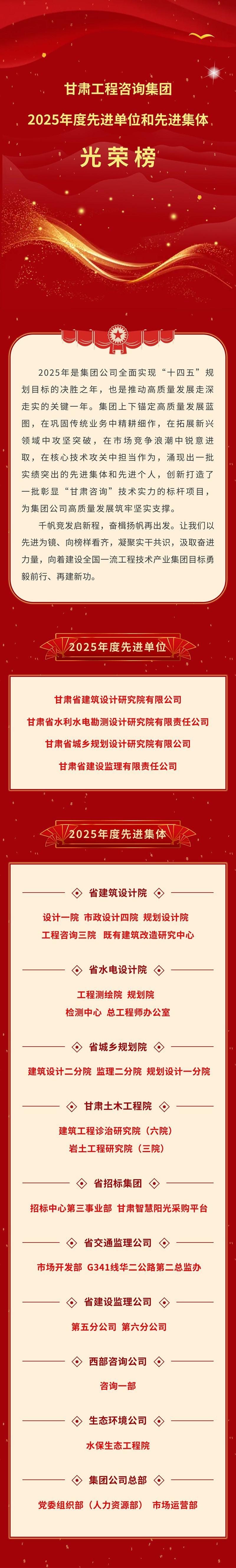 光榮榜① | 甘肅工程咨詢集團(tuán)2025年度先進(jìn)單位和先進(jìn)集體