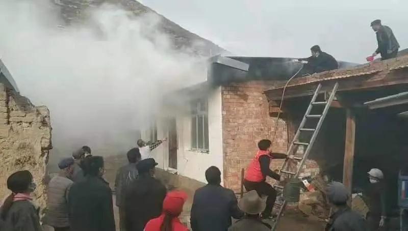 聽到村民們的呼救聲,正在村口疫情防控監(jiān)測(cè)點(diǎn)值守的幫扶工作隊(duì)隊(duì)員、包村干部與鎮(zhèn)領(lǐng)導(dǎo)、村“兩委”干部及志愿者一起,第一時(shí)間沖向了火災(zāi)現(xiàn)場(chǎng),實(shí)施開展撲救工作?,F(xiàn)場(chǎng)火勢(shì)兇猛,盡管眾人一起用水傾澆,卻仍未阻止火勢(shì)蔓延。瞬間,屋頂?shù)臋M梁也燒著了,發(fā)出噼啪的響聲,房頂隱約在搖晃,可大家依然奮不顧身地救火,甚至有人沖上了危險(xiǎn)的屋頂。