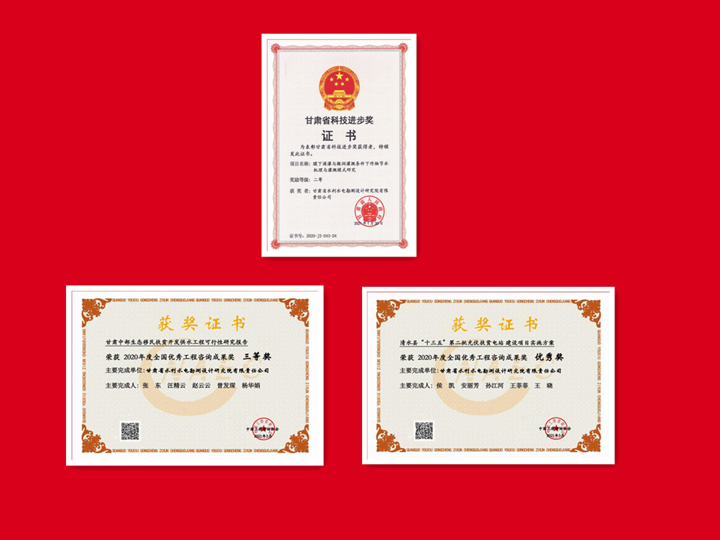 科研成果在工程實(shí)踐中開花結(jié)果,多個(gè)項(xiàng)目獲技術(shù)表彰獎(jiǎng)勵(lì):《民勤縣紅崖山水庫加高擴(kuò)建工程》獲甘肅省優(yōu)秀工程勘察設(shè)計(jì)一等獎(jiǎng);《石羊河流域重點(diǎn)治理項(xiàng)目西營河專用輸水渠工程》《古浪縣生態(tài)移民暨扶貧開發(fā)黃花灘項(xiàng)目水利骨干工程》《大通河納子峽水電站工程地質(zhì)勘察》《昌馬水庫樞紐工程地質(zhì)勘察》分別獲甘肅省優(yōu)秀工程勘察設(shè)計(jì)二等獎(jiǎng);《甘肅中部生態(tài)移民扶貧開發(fā)供水工程可行性研究報(bào)告》獲全國優(yōu)秀工程咨詢成果獎(jiǎng)三等獎(jiǎng);《清水縣“十三五”第二批光伏扶貧電站項(xiàng)目》獲全國優(yōu)秀工程咨詢成果獎(jiǎng)優(yōu)秀獎(jiǎng)。