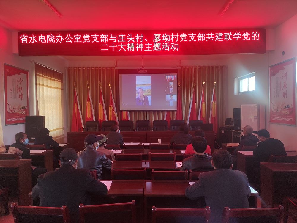 為持續(xù)促進黨的二十大精神學習貫徹走深走實,使黨的二十大精神進村入戶、深入人心,11月22日,甘肅省水利水電勘測設計研究院有限責任公司辦公室黨支部與幫扶村西峰區(qū)莊頭村黨支部、廖坳村黨支部開展共建聯(lián)學黨的二十大精神主題活動。