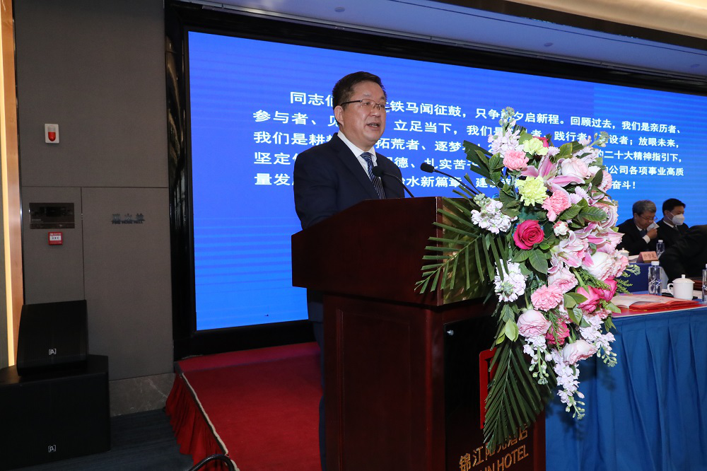 牛軍在講話中指出,水電設(shè)計院的工作是甘肅水利工作的一個重要組成部分。過去的一年,水電設(shè)計院堅持以習(xí)近平新時代中國特色社會主義思想為指導(dǎo),切實(shí)踐行“十六字”治水思路,準(zhǔn)確把握全省水利發(fā)展動態(tài),緊緊圍繞生產(chǎn)經(jīng)營中心任務(wù),實(shí)現(xiàn)快速發(fā)展,為全省水利改革發(fā)展提供了堅強(qiáng)的技術(shù)支撐。他要求,新的一年,水電設(shè)計院一要堅持黨的領(lǐng)導(dǎo),深入學(xué)習(xí)貫徹黨的二十大精神,把黨的領(lǐng)導(dǎo)和黨的建設(shè)融入企業(yè)治理各環(huán)節(jié),堅持服務(wù)全省水利“五水共建、四網(wǎng)統(tǒng)籌”的部署,為我省“一核三帶”發(fā)展格局、“四強(qiáng)”行動提供堅強(qiáng)水安全保障。二要發(fā)揮智庫作用,立足實(shí)際、面向未來,緊抓當(dāng)前水利改革發(fā)展重大機(jī)遇,積極落實(shí)“四抓一打通”方案,推進(jìn)重大引調(diào)水工程和區(qū)域骨干水源建設(shè),完善城鄉(xiāng)輸配水系統(tǒng),主動配合謀劃儲備一批水資源支撐保障重大項(xiàng)目,盡快形成“甘肅水網(wǎng)”新格局。三要激活創(chuàng)新引擎,不斷加大科研創(chuàng)新力度,切實(shí)提高企業(yè)核心競爭力,努力打造國內(nèi)一流的水利綜合性院企。深入研究國家宏觀政策,以全省水安全保障等省級頂層規(guī)劃為引領(lǐng),著力在黃河治理保護(hù)國家戰(zhàn)略、白龍江引水、南水北調(diào)西線和黃河上游重大水利工程等重大項(xiàng)目規(guī)劃設(shè)計方面,提供堅實(shí)的技術(shù)支撐。他表示,水電設(shè)計院的改革發(fā)展與全省水利事業(yè)休戚與共,省水利廳將進(jìn)一步優(yōu)化水利市場營商環(huán)境,一如既往支持設(shè)計院改革發(fā)展,希望水電設(shè)計院繼續(xù)保持永不懈怠的精神狀態(tài)和一往無前的奮斗姿態(tài),奮力開創(chuàng)水電設(shè)計院發(fā)展新局面,為甘肅水利事業(yè)高質(zhì)量發(fā)展做出更大貢獻(xiàn)。