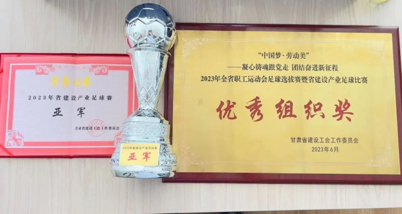 6月9日,土木工程院足球隊(duì)參加由甘肅省建設(shè)工會(huì)主辦的2023年省建設(shè)產(chǎn)業(yè)足球比賽,榮獲本次比賽亞軍,公司工會(huì)榮獲“優(yōu)秀組織獎(jiǎng)”。