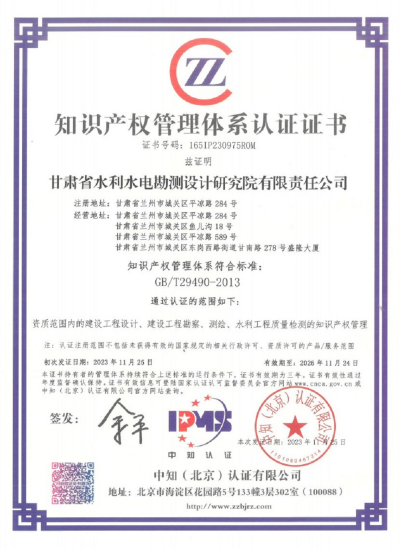 近日,省水電設計院順利通過《企業(yè)知識產(chǎn)權管理規(guī)范》(國家標準GB/T 29490-2013)的認證評審工作,取得《知識產(chǎn)權管理體系認證證書》,標志著在知識產(chǎn)權創(chuàng)造、運用、管理和保護方面邁上新臺階。
