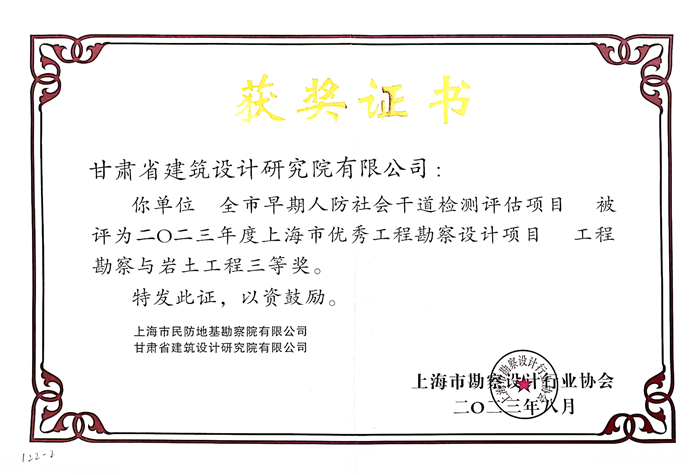本次獲獎(jiǎng)項(xiàng)目由省建筑設(shè)計(jì)院檢測中心聯(lián)合上海市民防地基勘察院有限公司,就蘭州市七八十年代人防社會干道開展檢測鑒定。項(xiàng)目獲獎(jiǎng),彰顯了省建筑設(shè)計(jì)院在工程勘察設(shè)計(jì)和檢測鑒定方面的創(chuàng)新能力和技術(shù)水平,也是對公司檢測業(yè)務(wù)板塊整體運(yùn)營效率、綜合服務(wù)能力的再一次肯定。