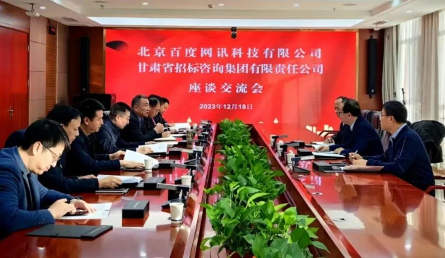 12月18日,北京百度網(wǎng)訊科技公司西北區(qū)總經(jīng)理李廣華一行到省招標(biāo)咨詢集團(tuán)交流座談。甘肅工程咨詢集團(tuán)黨委委員、副總經(jīng)理白鑫出席交流座談會,省招標(biāo)咨詢集團(tuán)黨委書記、董事長牛茺及相關(guān)負(fù)責(zé)人參加。