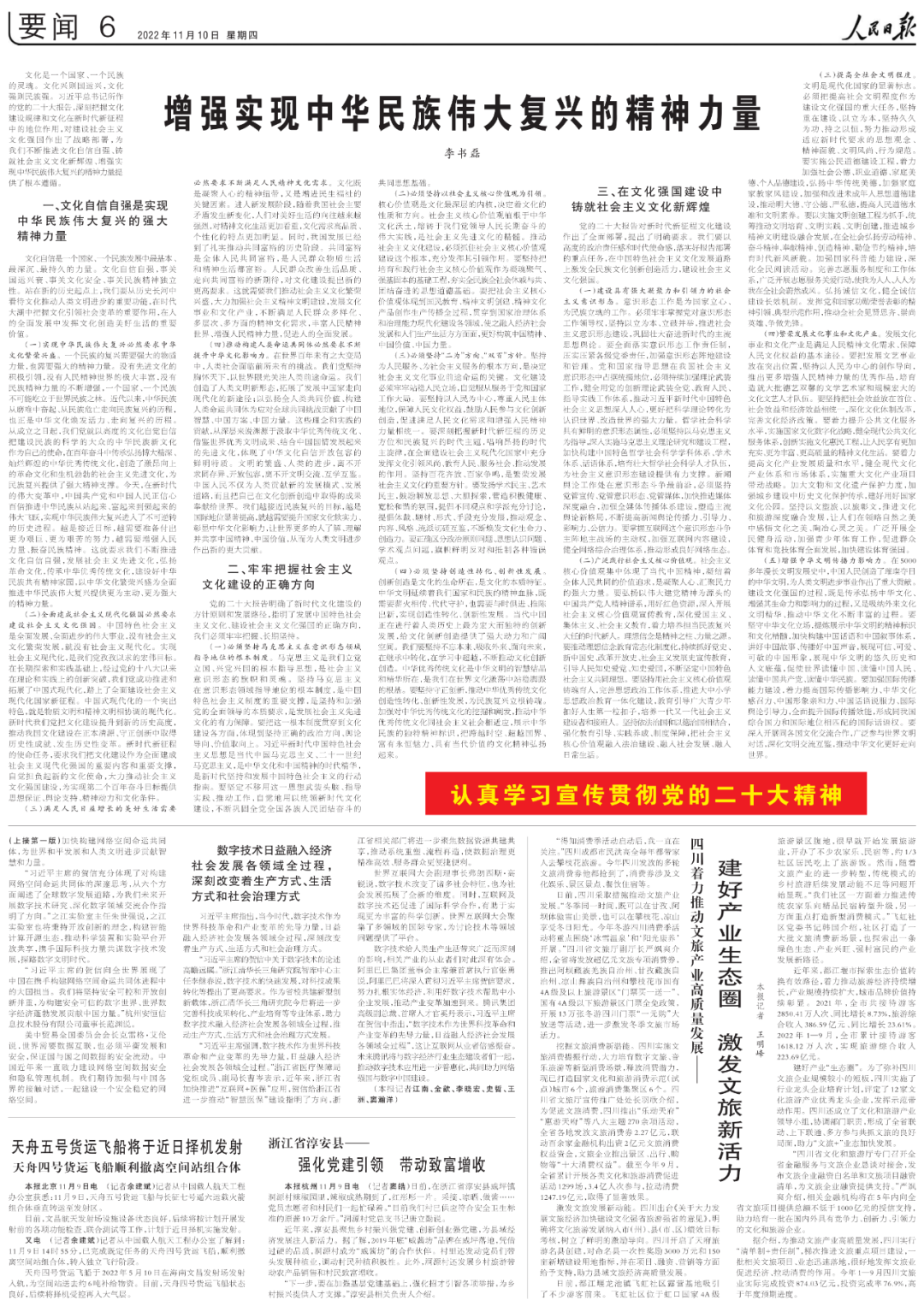 文化是一個國家、一個民族的靈魂。文化興則國運興,文化強則民族強。習(xí)近平總書記所作的黨的二十大報告,深刻把握文化建設(shè)規(guī)律和文化在新時代新征程中的地位作用,對建設(shè)社會主義文化強國作出了戰(zhàn)略部署,為我們不斷推進(jìn)文化自信自強、鑄就社會主義文化新輝煌、增強實現(xiàn)中華民族偉大復(fù)興的精神力量提供了根本遵循。