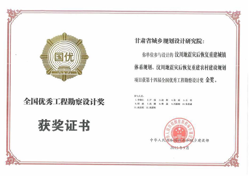 第十四屆全國優(yōu)秀勘察設計獎金獎